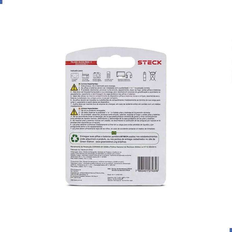 Pilha Alcalina 1.5V Tipo C Pack C/2 Steck PA15C2