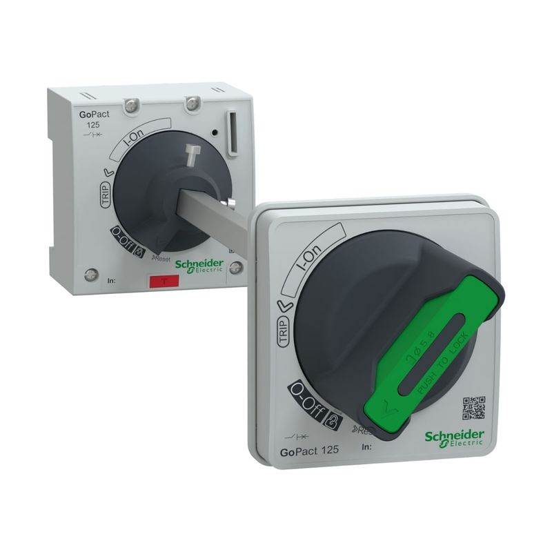 O GoPact de Schneider Electric é uma linha de disjuntores de caixa moldada especialmente projetada e dedicada a edifícios de pequeno e médio porte, fábricas, OEMs e outras aplicações exigentes. É uma solução simples com qualidade robusta e preço acessível. Projetada para atender aos requisitos das instalações de sistemas elétricos atuais em constante evolução. Este acessório é uma manopla rotativa estendida para o novo GoPact MCCB 250 e é instalada na face frontal dos dispositivos GoPact MCCB. O GoPact MCCB oferece uma boa relação preço-desempenho para aplicações básicas e garantiza uma proteção elétrica confiável para suas aplicações. A linha GoPact MCCB se beneficia da garantia de qualidade da Schneider Electric. Os acessórios GoPact levam o selo Green PremiumTM, que reflete o compromisso e a conformidade com as mais recentes regulamentações ambientais, a transparência sobre os impactos ambientais e os produtos circulares de baixo CO2.