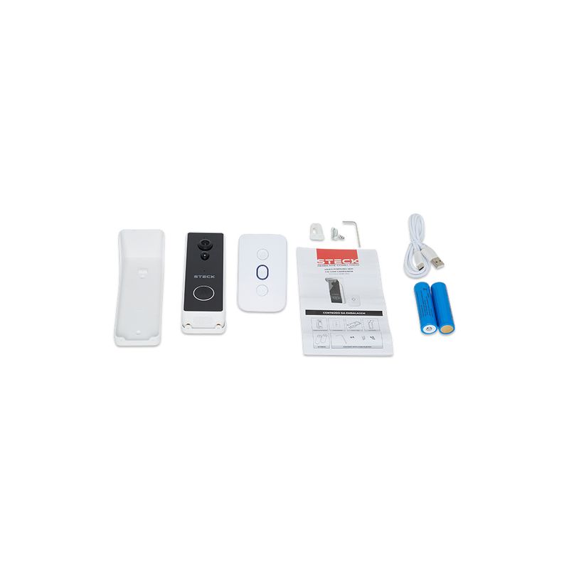 Inclui: 1 vídeo porteiro, 1 suporte de fixação e 1 cabo micro USB.